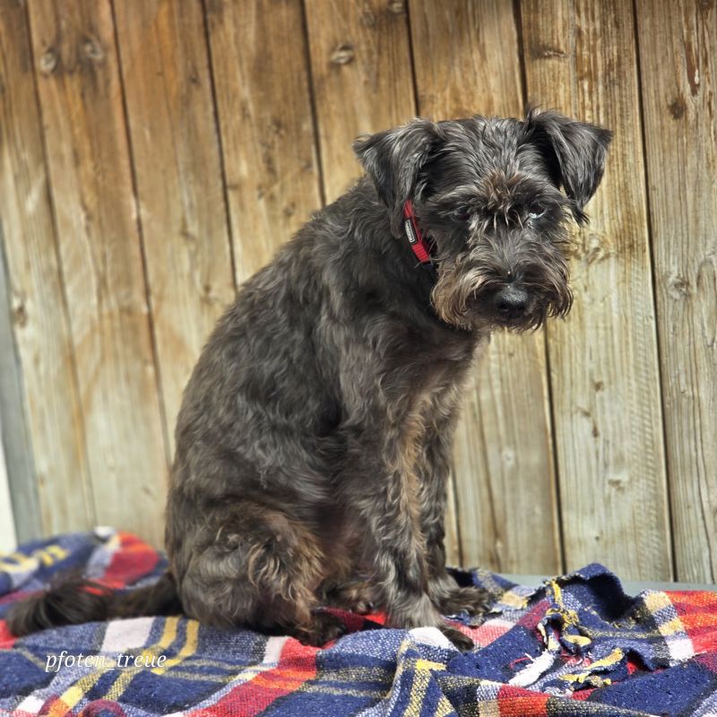 Romi ist trotz ihres Alters noch fit, sie geht gerne und auch lange spazieren. Sie ist verträglich mit Hunden und spielt auch gerne mit ihnen.