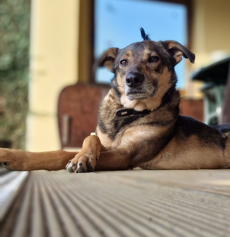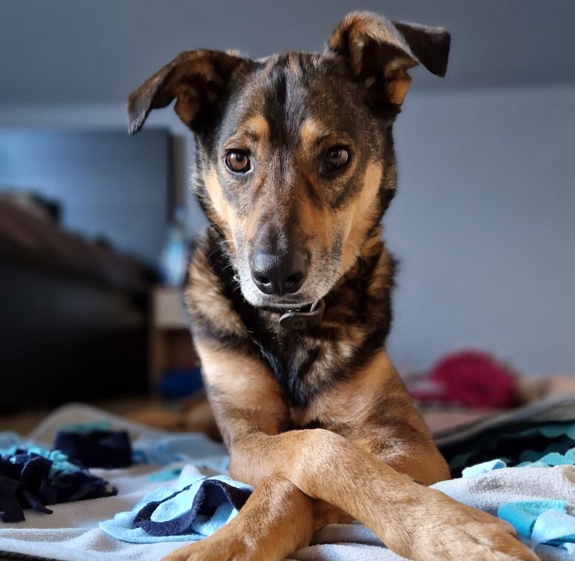 Mit den beiden Hündinnen im Haushalt versteht er sich bestens. Alleinbleiben ist inzwischen ebenfalls kein Problem mehr – und das sogar ohne die „Mädels“ als Rückhalt.