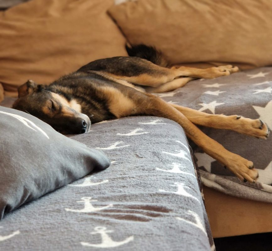 Zu viele Menschen auf engem Raum verunsichern ihn noch stark. Das ist jedoch nachvollziehbar und sollte möglichst vermieden werden. Wenn seine Signale übersehen werden, kann es vorkommen, dass er knurrt – nicht aus Aggression, sondern aus Unsicherheit und dem Wunsch nach mehr Abstand. Er lässt sich jedoch gut umlenken und entspannt sich schnell wieder. Für Situationen, in denen das nicht sofort möglich ist, hat sein Trainingsfrauchen bereits ein Markerwort mit ihm aufgebaut. Damit wird er künftig noch zuverlässiger ansprechbar sein.