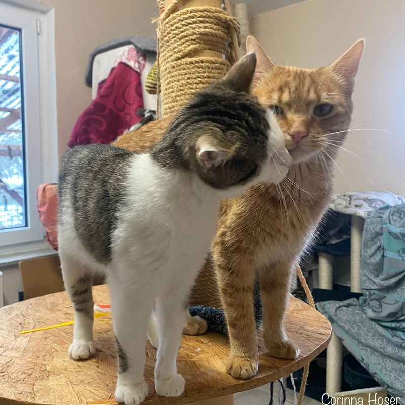 Wie man den Fotos entnehmen kann, kommt sie mit Artgenossen sehr gut zurecht. Auf den Bildern ist Zeus zu sehen (der mit seinem Bruder noch nach einem Zuhause sucht). Der oder die Artgenossen, zu dem/denen sie zieht, sollte/n wirklich sehr sozial sein und liebevoll mit ihr umgehen. Sie ist eine kleine Prinzessin und wirklich sehr sensibel und lieb. Ärger geht sie sofort aus dem Weg und tritt den Rückzug an. Wenn sie einen mit ihrem süßen Silberblick anschaut, dann schmilzt man einfach dahin.