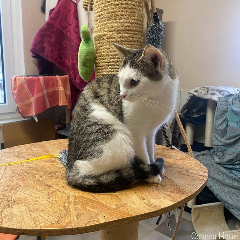 Lora kam als kleines Kitten zusammen mit ihrem Bruder über einen befreundeten Tierschutzverein zu uns. Sie wurden von einer Katzenmama adoptiert und liebevoll großgezogen. Da sie am Anfang sehr schüchtern waren, haben sich leider nie liebevolle Menschen für sie interessiert. Sie tauten mit der Zeit immer mehr auf und haben den Menschen lieben gelernt. Lora und ihr Bruder Lio wurden leider krank und befanden sich in einer längeren Behandlungsphase. Lio ist leider Ende letzten Jahres sehr plötzlich verstorben. Nun sucht Lora ein liebevolles, ruhiges und einfühlsames Zuhause mit Artgenossenanschluss. Es sollte ohne Trubel sein, keine kleinen Kinder und wirkich auf Lora eingehen können und das Vertrauen gut aufbauen.