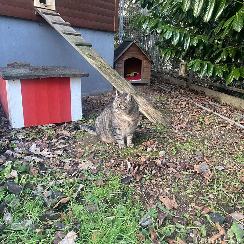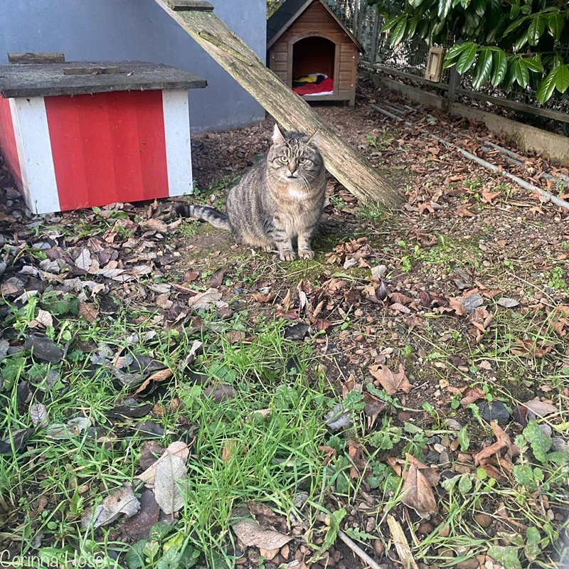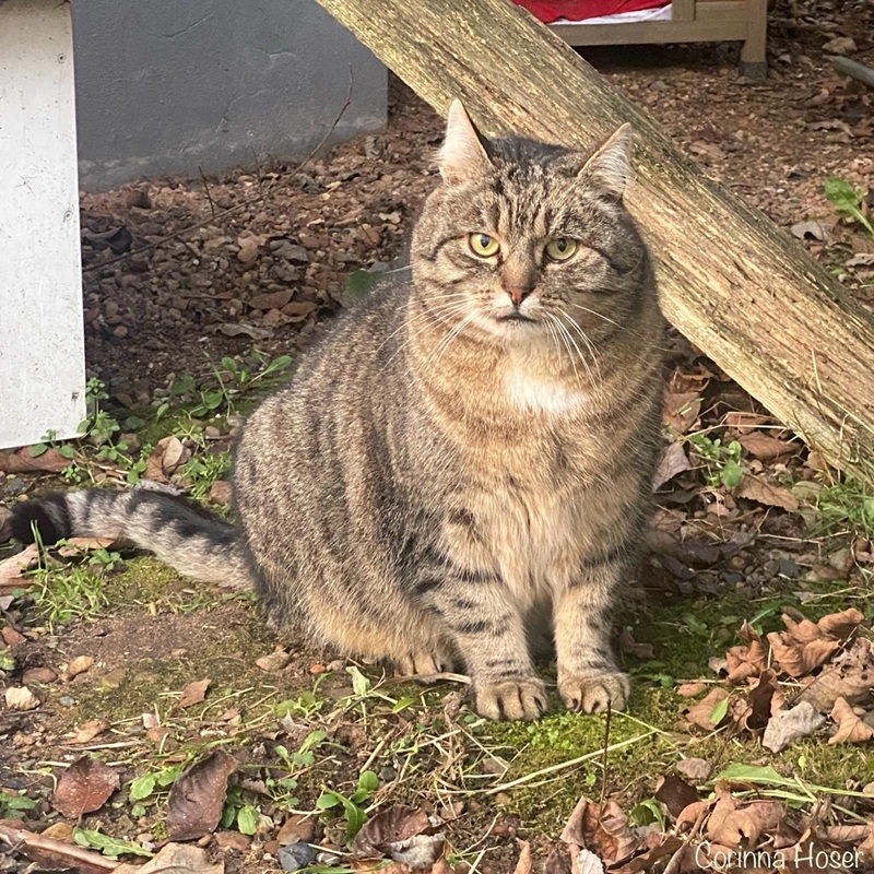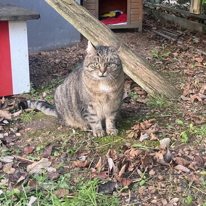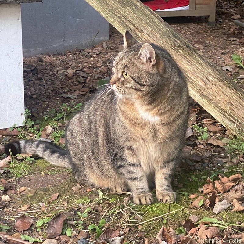 Zacharias kam tatsächlich freiwillig zu uns. Er wurde von unserer ehemaligen Bewohnerin und Freigängerin Bea eines Tags mitgebracht und so entschied er sich auch zu bleiben. Zacharias hat die tollen Vorzüge gesehen und Bea muss ihm wohl einiges erzählt haben, was den putzigen Kerl wohl gefallen hat. Er wurde von uns kastriert und bewohnt seitdem den Pavillon. Er kann kommen und gehen wie er möchte, hat es immer warm und ist gut versorgt. Zu uns Menschen hält er Abstand und schaut immer aus sicherer Entfernung.