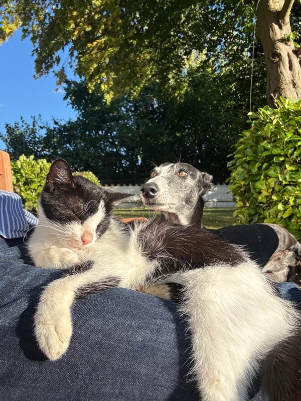 Kleine und große Veränderungen wurden sichtbar. Das Drehen ist noch vorhanden und wird wahrscheinlich auch immer einen Teil ihres Lebens ausmachen, aber es wird weniger und die Schlafphasen werden länger und sogar richtig entspannt. Ihr Köpfchen ist nicht mehr nur noch eingedreht. Sie nutzt nun auch die rechte Seite, liegt entspannt auf dem Schoß oder im Körbchen oder kuschelt sehr, sehr gerne. Sie schnuppert unter Aufsicht im Garten an den Pflanzen und springt der Katzenangel hinterher. Der Kontakt zum Menschen ist ihr ganz besonders wichtig, dies gibt ihr ausgiebige Entspannungsphasen.