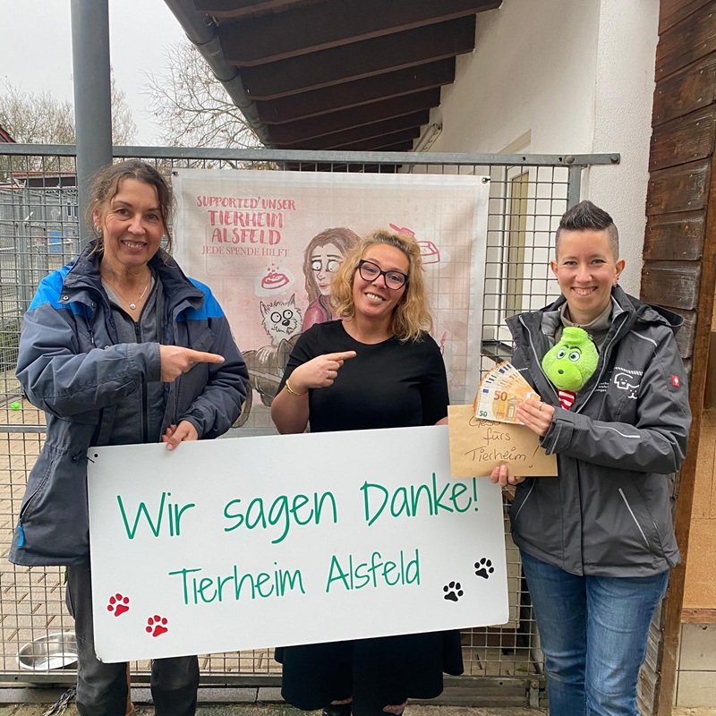 Am nächsten Tag fand dann die Geldübergabe an Natascha Hirschmann statt und Isa Keil war stellvertretend für alle Spenderinnen auch mit dabei gewesen. Und sogar der Grinch konnte sich ein kleines Lächeln nicht verkneifen.