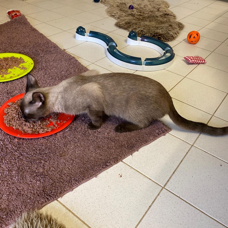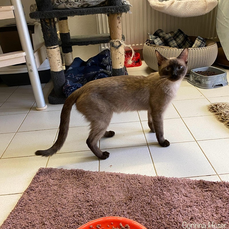 Der hübsche Thai-Siam Kater hat alles super verkraftet und zeigt sich bei uns als ein ruhiger, aber stabiler Charakter. Er mag Streicheleinheiten, doch wenn es ihm zu viel wird, dann geht er einfach. Mit seinen Artgenossen kommt er weitestgehend sehr gut klar. Er ist einfach der Chef - sofern sich die anderen Artgenossen nicht auflehnen oder aber seinen Platz streitig machen, dann ist er ganz nett. Wird sich aber aufgelehnt, dann kennt er nichts und zieht sehr klare Grenzen. Gruffi hat einen Kumpel, mit dem wir ihn gern vermitteln möchten: Cubbi. Die beiden liegen zusammen und putzen sich ausgiebig. Es wäre schade sie zu trennen!