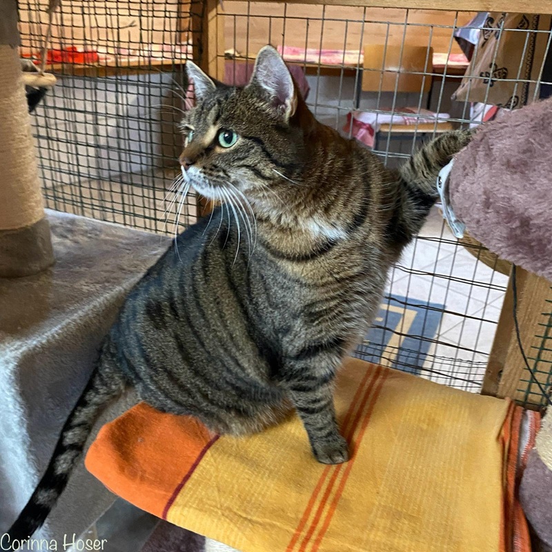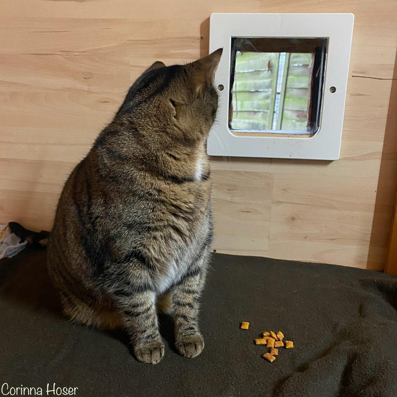 Wenn ihm langweilig ist oder er raus oder rein will, macht er sich mit lautem Maunzen bemerktbar - denn er liebt es draußen zu sein und dreht öfter auch mal größer Runden, bei denen gerne mehrere Tage verstreichen drüfen. Am Ende sitzt er aber doch wieder vor der Terrassentür und tut, als ob er nie weg gewesen wäre.