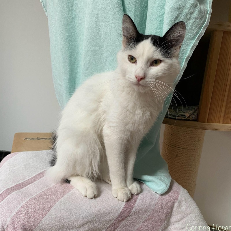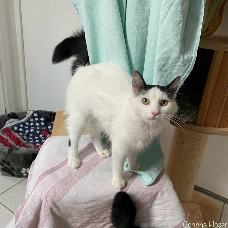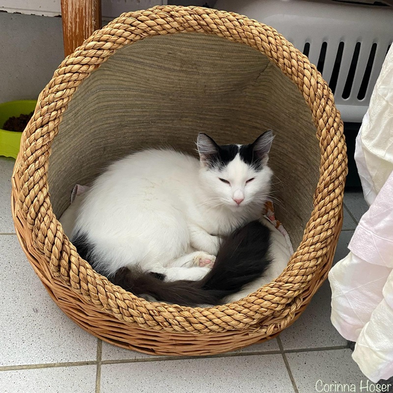 Berd haben wir von unserem befreundetem Verein, der Tierhilfe Hoffnung, übernommen. Der noch junge Kater ist ein wahrer Schmusekerl. Menschen liebt er über alles und wenn er nicht genug Aufmerksamkeit bekommt, dann legt er sich eben in den Nacken. So schmusig er auch ist, so viel Action will er manchmal auch haben. Da wird schon mal die Nacht zum Tag gemacht und er fegt mit den untersch. Spielsachen durchs Zimmer. Er beschäftigt sich super gut alleine und man könnte denken, dass er keine Artgenossen braucht - da hat man aber falsch gedacht. Er animiert teils seine Kumpels im Zimmer ihn zu jagen und auch so hat er keine Probleme mit ihnen. Ein bisschen hat man den Eindruck, dass er etwas über der Bande steht. Nun ja, er ist der "Älteste" mit seinem einen Jahr im Zimmer, die Anderen meist erst 6 Monate.