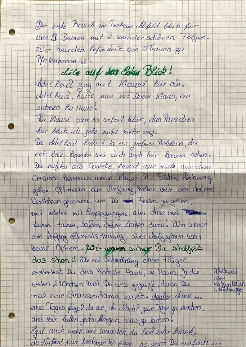Das Tierheim und das gesamte Team nehmen Abschied von Adelheid. In dankbarer Erinnerung an sie und mit dem Wissen, dass sie noch einmal ein schönes Zuhause hatte.