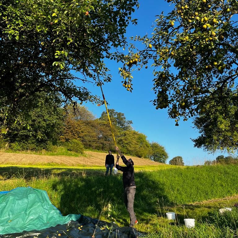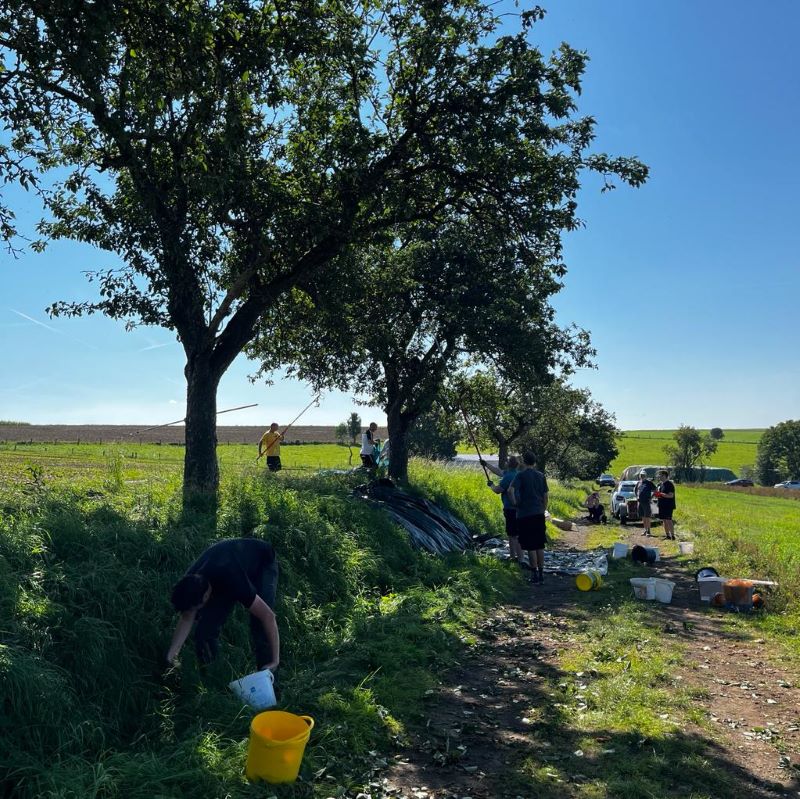 An dieser Stelle noch einmal ein ganz herzliches Dankeschön an jeden einzelnen von Euch/ Ihnen für die Bereitstellung von Bäumen, für den Hänger, für die Verpflegung der tatkräftigen Helfer und für die großartigen Pflücker...nur gemeinsam ist so etwas möglich.