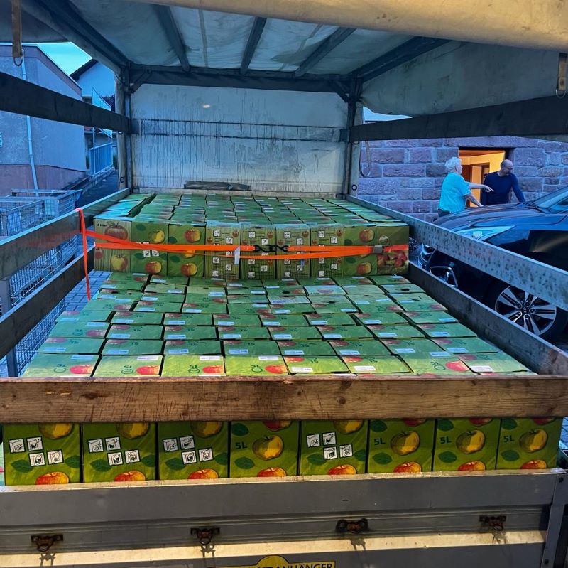 Ein herzliches Dankeschön geht auch an die Kelterei Merx, die für uns Überstunden gemacht hat, verspätet in ihren Samstagabend starten konnte und trotzdem die ganze Zeit gute Laune hatte und mit Spaß dabei war.