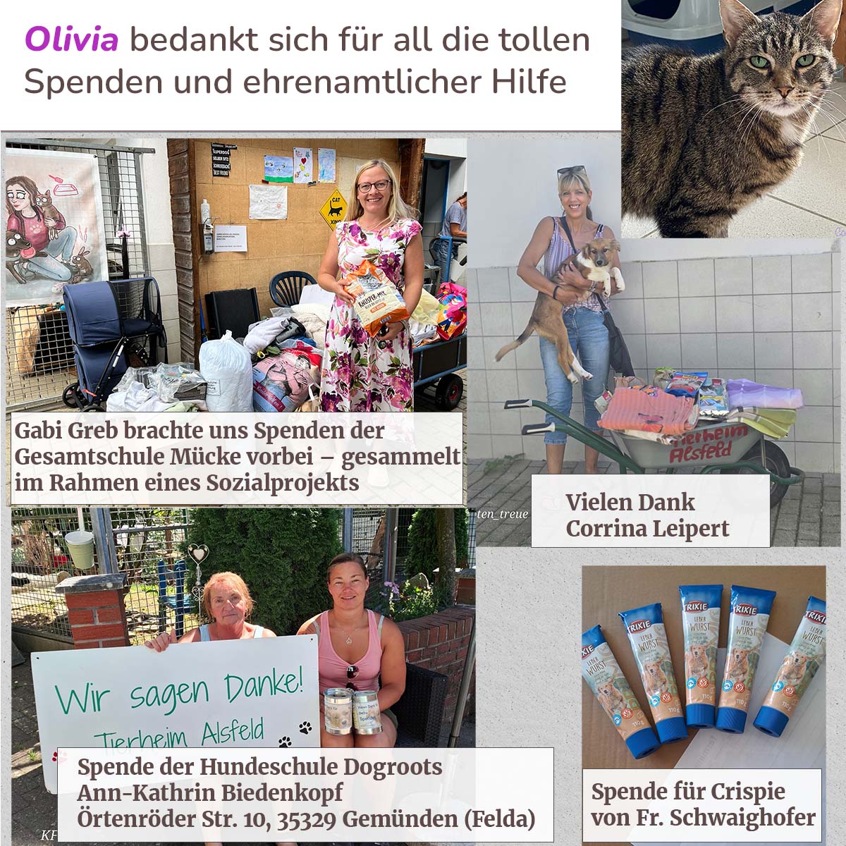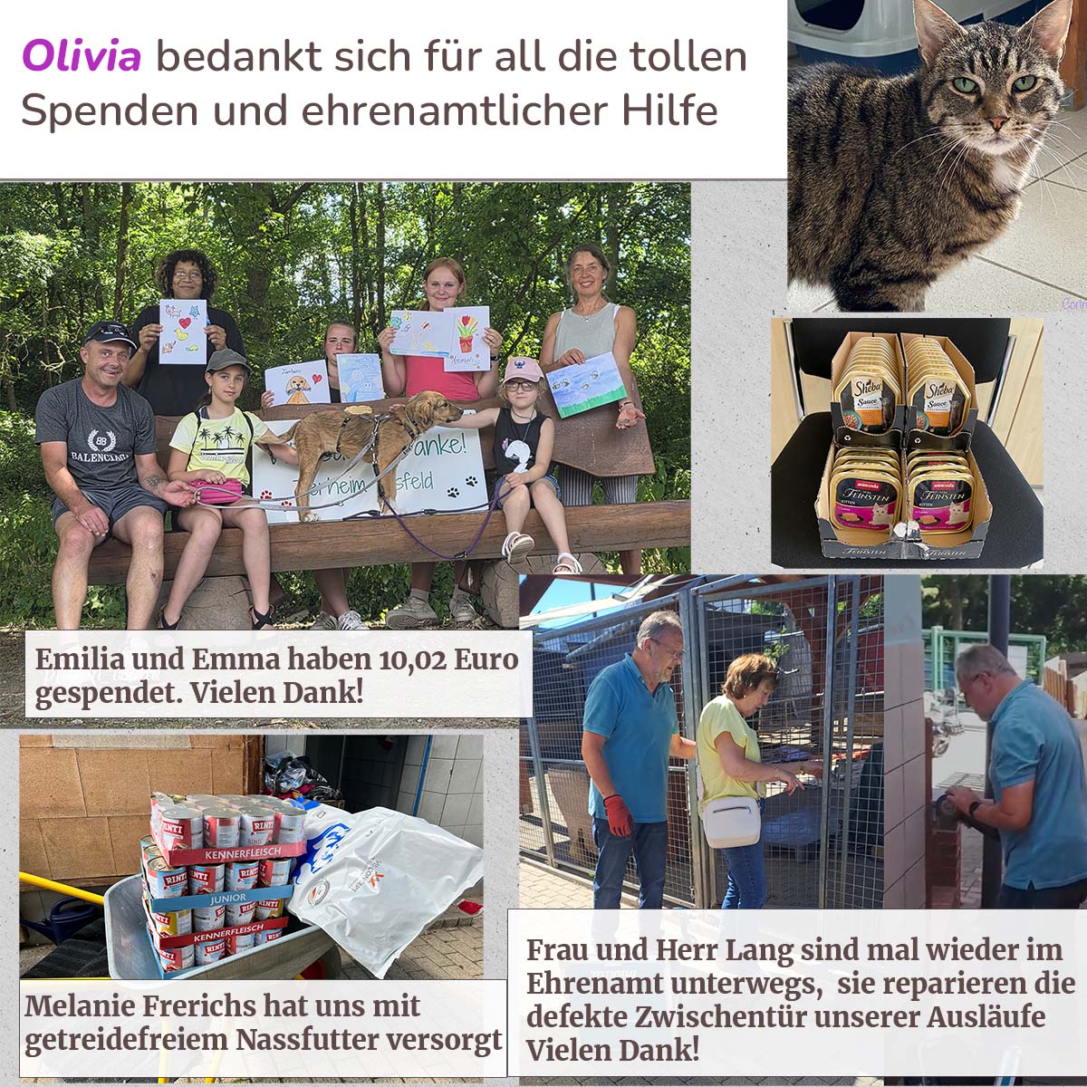 Auch im Juli 2025 haben uns wieder viele wunderbare Spenden erreicht. Wir bedanken uns von Herzen bei allen, die uns unterstützen – sei es mit Zeit, Tatkraft oder finanziellen Mitteln. Jede Hilfe, ob groß oder klein, macht unseren Alltag im Tierheim ein Stück leichter.
