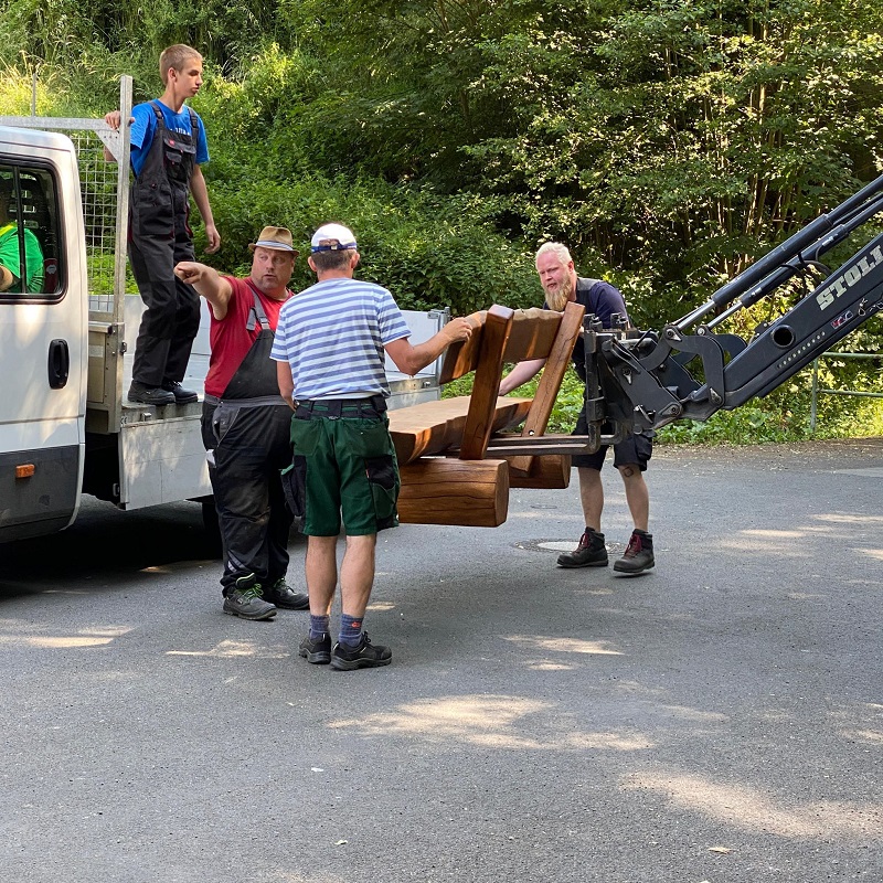Die Wochen vergingen und wir warteten sehnsüchtig auf den Liefertermin. Nun endlich war es soweit. Die Bänke wurden angeliefert, aber sehen Sie doch am besten selbst:
