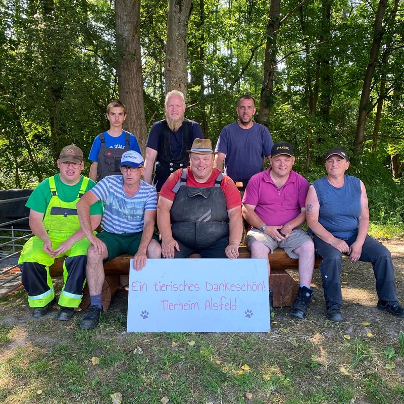 Unser Pfotencafé ist im Innen- sowie Aussenbereich absolut toll geworden und wie sehr haben wir uns auch vor dem Tierheim ein einheitliches Bild gewünscht. Zuerst war die Überlegung ob man einen Spendenaufruf macht oder aber gezielt Spender anschreibt, die bereits haben anklingen lassen, dass sie gern etwas finanzieren würden was ein Wunsch des Tierheims wäre. So haben wir uns für die zweite Variante entschieden. Angebote wurden eingeholt und die Schottener sozialen Dienste wurde unsere Wunschfirma. Eine tolle Einrichtung die u.a. mit behinderten Menschen arbeiten. Und so kam es, dass Steffi Reschke ohne wenn und aber sofort eine große Halbstamm-Bank (2,50m) finanzierte und direkt ihre beiden lieben Freundinnen Beate Wohlgemuth und Manuela Preßler anschrieb, ob sie sich nicht zu dritt noch eine 2,50m Bank teilen würden. Beide sagten sofort zu und das Geld war noch am selben Tag auf unserem Konto, so dass die Bestellung direkt getätigt werden konnte.