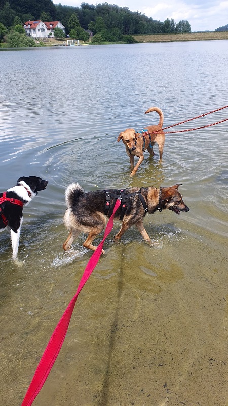 Heute vor einer Woche machten sich unsere Mitarbeiter und Interessierte zur Antrifttal-Sperre auf, um unseren Bewohnern etwas Abwechslung und eine Abkühlung zu verschaffen. Alle hatten viel Spaß und unter den Augen von Hundetrainerin Angela Döring kann doch da nichts schief gehen :)