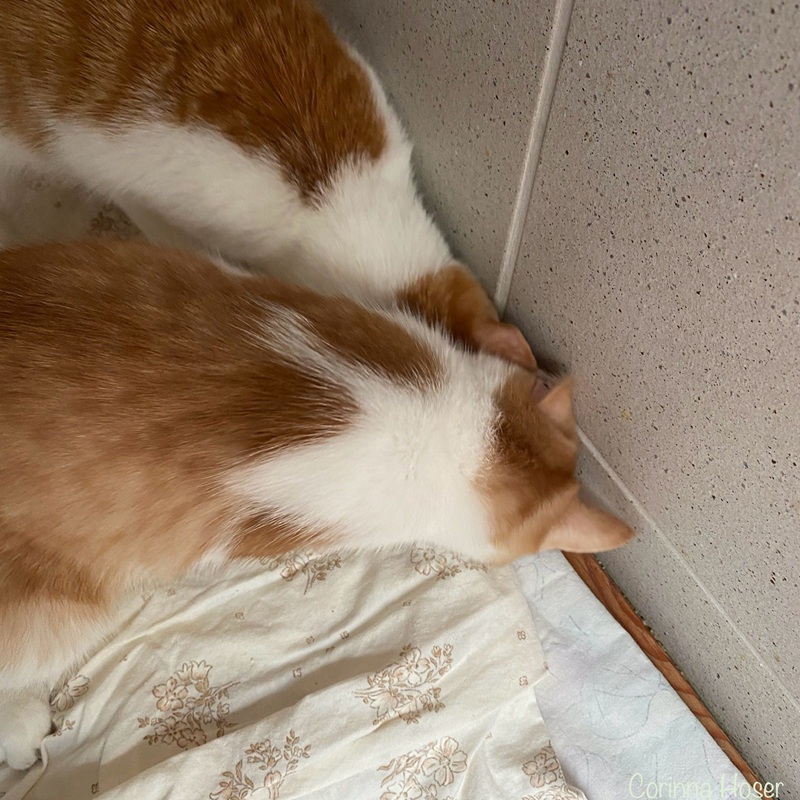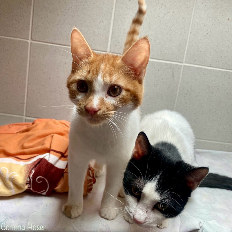 Rainer und Siggi haben wir von unserem befreundetem Verein, der Tierhilfe Hoffnung, übernommen. Die beiden Brüder suchen gemeinsam ein Zuhause was Spiel, Spaß und Überraschungen verspricht. Sie sind aufgeschlossen bei allem und jedem. Kommt man ins Zimmer, dann wird man von den Brüdern begrüßt. Oft hecken sie auch gemeinsam was aus und Houdini - ähm also Rainer - zeigt seinen Zaubertrick: Katze ohne Körper. Tadaaaaa (siehe Foto).