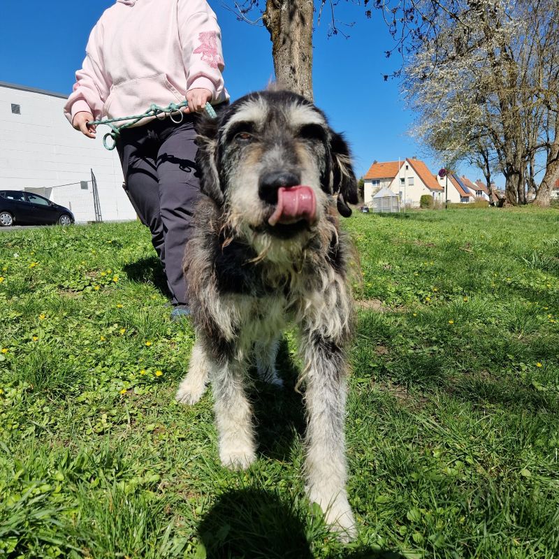 Kalle wurde von unserer Mitarbeiterin in Rumänien entdeckt und man kann behaupten, dass es quasi Liebe auf den ersten Blick war. Schon in Rumänien zeigte sich der Rüde den Menschen gegenüber sehr freundlich und zugewandt. Er lebte dort mit zwei Hündinnen zusammen und zeigte sich immer mit bester Laune, die wirklich ansteckend ist. Ein paar Monate später durften wir Kalle dann schon in unserem Tierheim willkommen heißen. Mittlerweile wohnt er in unserer großen Hundegruppe und zeigt sich sozial sehr verträglich. Kalle ist ca. 9 Jahre alt und kann schon gut an der Leine laufen. Auch die Hundeschule hat er bereits besucht und zeigt sich auch hier von seiner besten Seite. Außerdem kommt Kalle gut mit Kindern zurecht, d.h. in seinem neuen Zuhause dürfen gerne Kinder wohnen.