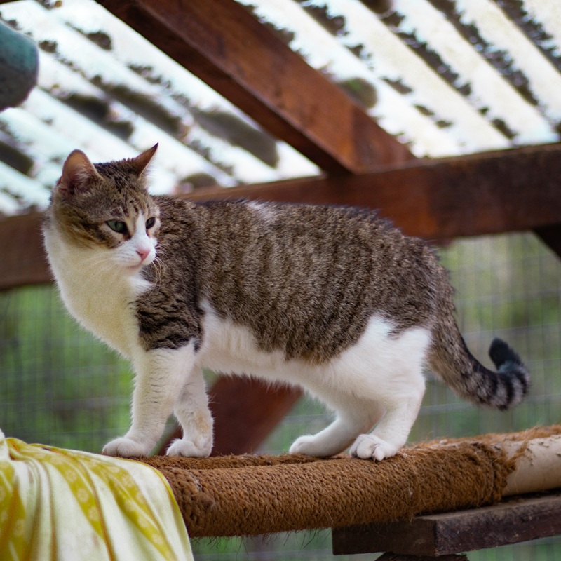 Kessi haben wir von unserem Partnerverein, der Tierhilfe Hoffnung, übernommen. Er ist einer von 23 Katzen die zusammen mit 114 Hunden auf einem Hof gelebt haben und die durch die Tierschutz Polizei gesichert wurden.