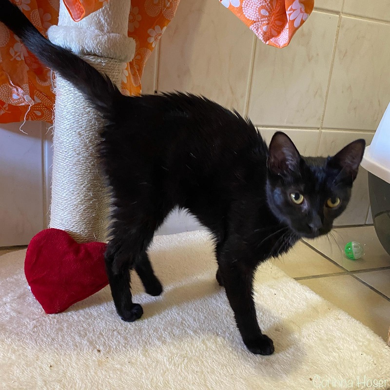 Mit Artgenossen kommt er super gut klar und entweder zieht er mit einem Freund ins neue Zuhause oder aber im Zuhause wartet ein etwa gleichaltriger, sehr sozialer Artgenosse auf ihn. Für Spiel und Spaß ist er ebenfalls zu haben. Momo muss man einfach erleben. Wir können uns auch sehr gut vorstellen, dass er mit Hunden super klar kommt. Aktuell bewohnt er ein Zimmer mit Fenja und Minah.