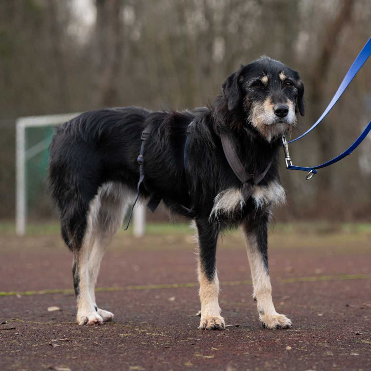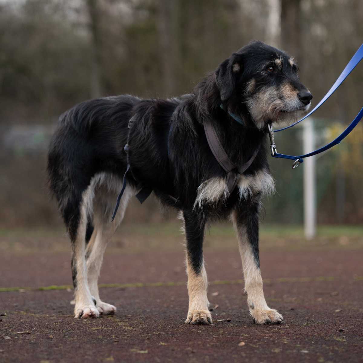 Bei uns zeigt sich Gaia auch unsicher, lässt sich aber streicheln, geht gut an der Leine spazieren, kann draußen schon Leckerlis aus der Hand nehmen und nimmt an der hausinternen Hundeschule teil. Gaia orientiert sich viel an anderen Hunden, was ihr Sicherheit gibt, ab und zu orientiert sie sich auch schon an uns Menschen.