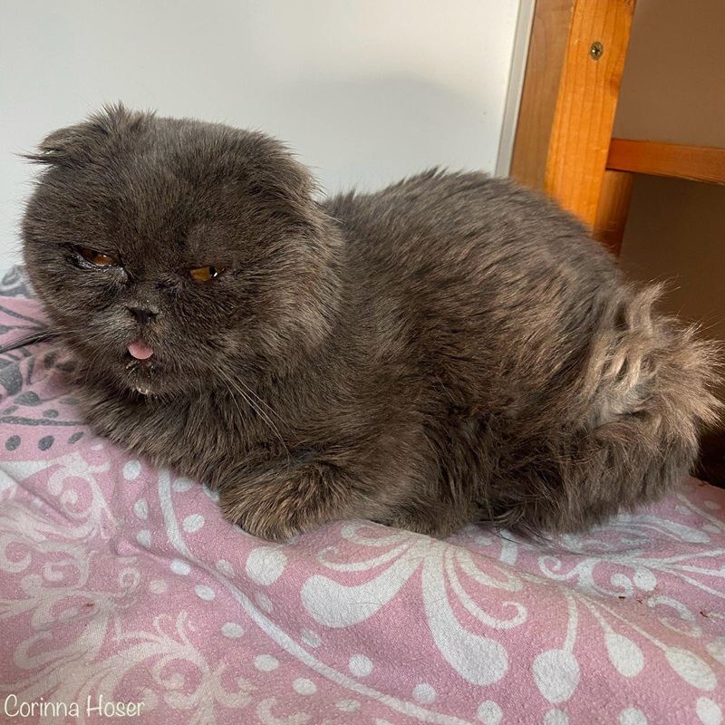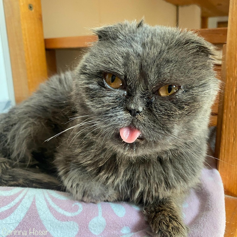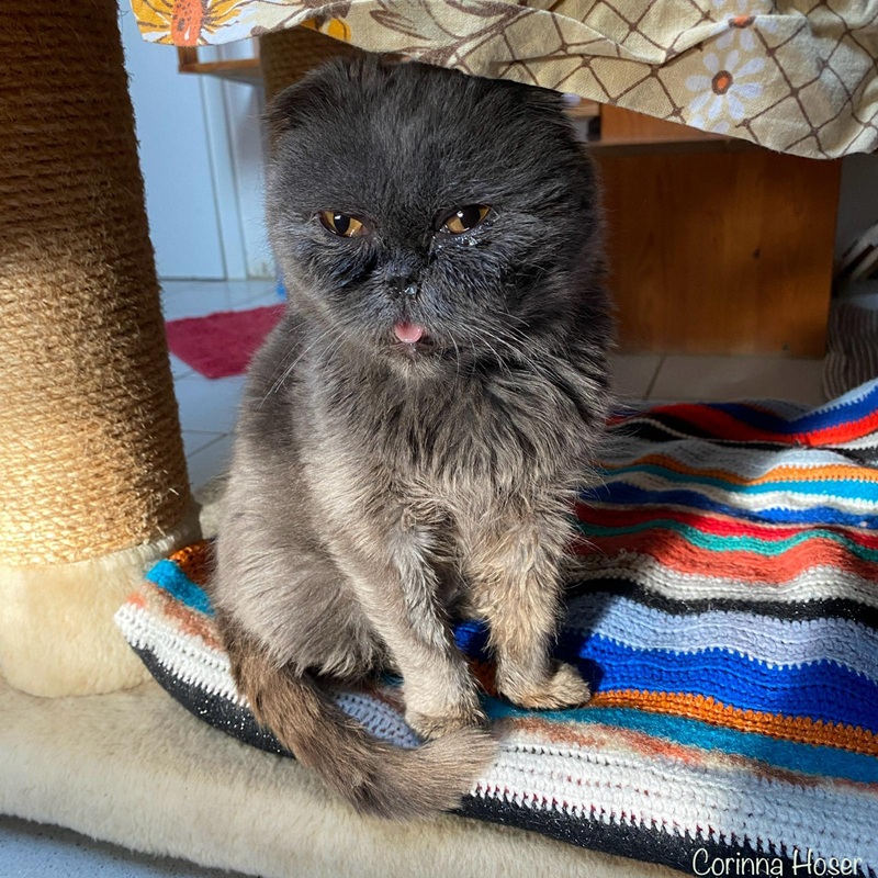 Weihnachtsperle bringt leider das Handicap mit, was viele Scottish Fold Katzen haben. Diese Form gilt leider als Qualzucht und so hat auch Weihnachtsperle leider gesundheitliche Einschränkungen.