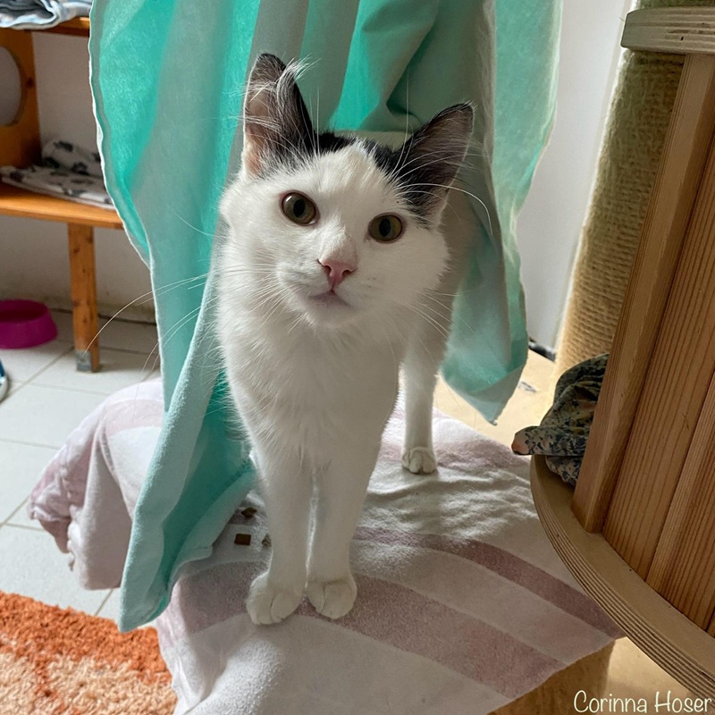 Berd haben wir von unserem befreundetem Verein, der Tierhilfe Hoffnung, übernommen. Der noch junge Kater ist ein wahrer Schmusekerl. Menschen liebt er über alles und wenn er nicht genug Aufmerksamkeit bekommt, dann legt er sich eben in den Nacken. So schmusig er auch ist, so viel Action will er manchmal auch haben. Da wird schon mal die Nacht zum Tag gemacht und er fegt mit den untersch. Spielsachen durchs Zimmer. Er beschäftigt sich super gut alleine und man könnte denken, dass er keine Artgenossen braucht - da hat man aber falsch gedacht. Er animiert teils seine Kumpels im Zimmer ihn zu jagen und auch so hat er keine Probleme mit ihnen. Ein bisschen hat man den Eindruck, dass er etwas über der Bande steht. Nun ja, er ist der "Älteste" mit seinem einen Jahr im Zimmer, die Anderen meist erst 6 Monate.