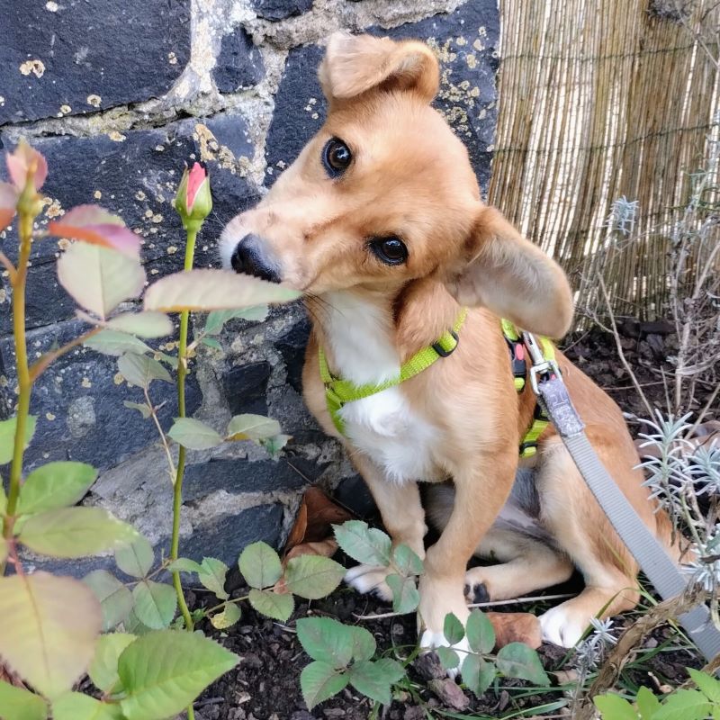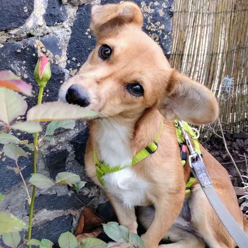Ema ist eine zarte und erst einmal zurück haltende Hündin, aber schon nach drei Tagen auf der Pflegestelle aufgetaut und fröhlich.