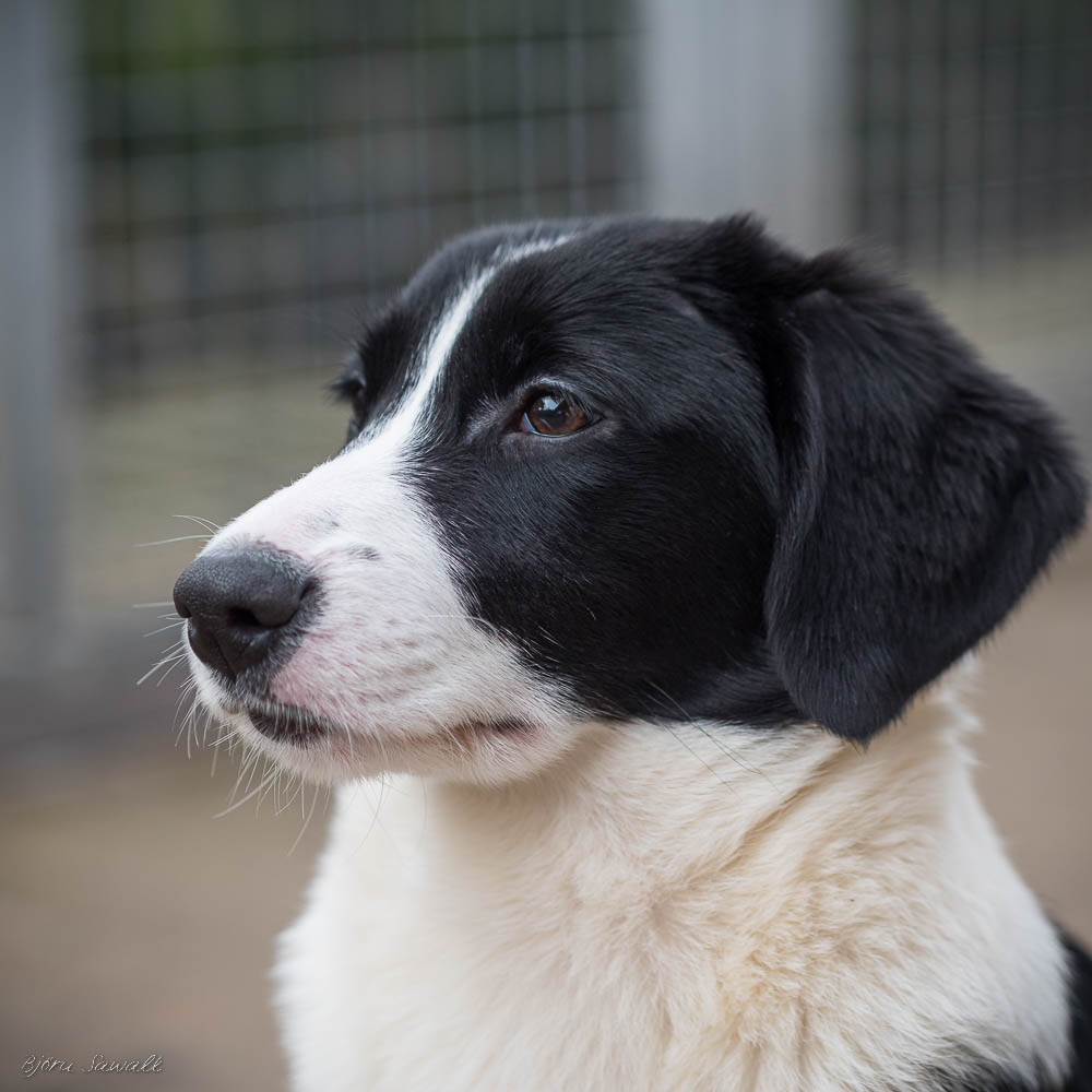 Domino kam im Dezember 2022 zusammen mit anderen Junghunden zu uns.
