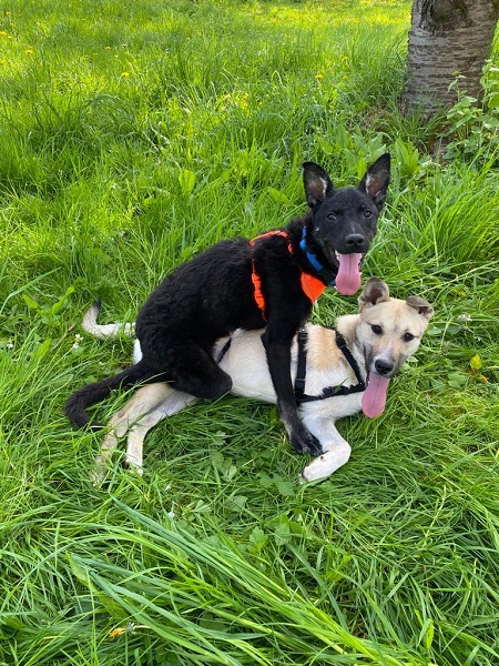 Dass er nur drei Beine hat, hindert Champ nicht daran, mit seinen Hundekumpels zu toben und zu raufen. Wenn wir ihn beobachten, verhält er sich wie ein ganz normaler junger Hund, der Lust hat, die Welt kennenzulernen. An Suchspielen hat er große Freude, erst recht, wenn Leckerlis im Spiel sind.