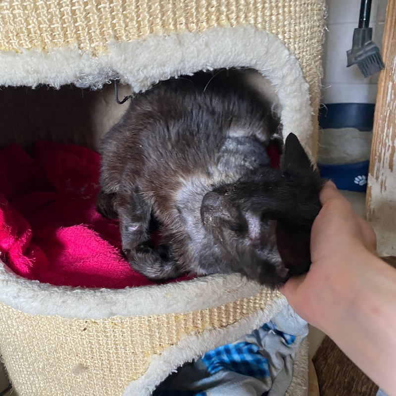 Wenn man ihn besucht sieht man, dass er teilweise geschoren ist. Er hat ein Hautproblem mit Verkrustungen am Hals und dies wurde bereits alles noch in Rumänien behandelt. Loki sollte aufgrund seiner enormen Sichteinschränkung nicht mehr in ungesicherten Freilauf. Für ihn wäre ein gesicherter Freilauf toll oder eine großzügige Wohnungshaltung mit gesicherter Terrasse / Balkon, damit er die Möglichkeit von frischer Luft und der warmen Sonne genießen kann. In dem Katzenzimmer mit Balkon merkt man wie gern er doch unten im Freilauf wäre und Gras sowie Büsche inspizieren möchte. Er sitzt am Balkon und sein Blick schweift immer nach unten in Richtung Freilauf.
