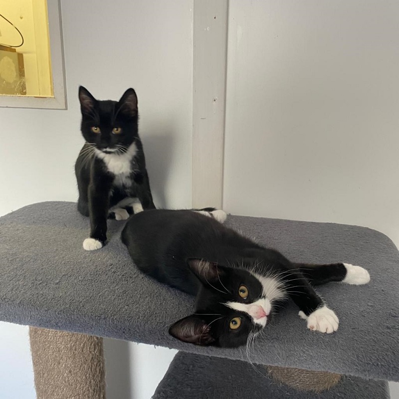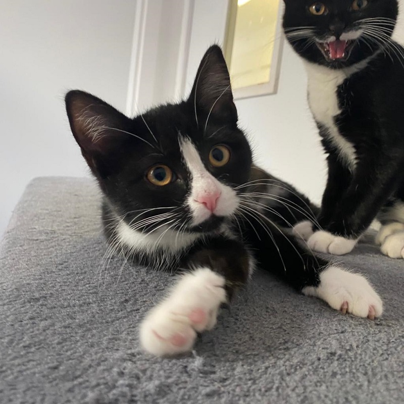 Bonny und Clyde haben wir vom Tierheim Marburg übernommen, da sie an ihre Aufnahmekapazität gekommen sind. Die beiden Katzenkinder wurden in Breidenbach gefunden. Anfangs waren sie sehr ängstlich und abweisend gegenüber dem Menschen. Durch intensive Betreuung unserer Tierärztin wurden sie ab dem 3. Tag zutraulich und haben angefangen zu spielen und zu schnurren. Bonny ist die Mutigere von den beiden. Clyde redet gern und viel. Es war fast unmöglich Bilder von ihm zu machen, auf denen er nicht miaut. Die beiden sind ein wundervolles Dreamteam und werden auch nur gemeinsam vermittelt. Mit ihnen holt man sich die Freude ins Haus. Zu schön ist es, kleine Katzenkinder beim Aufwachsen zuzusehen.