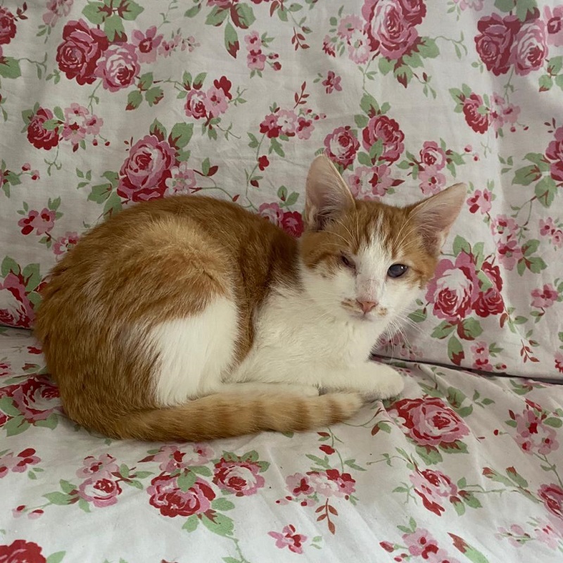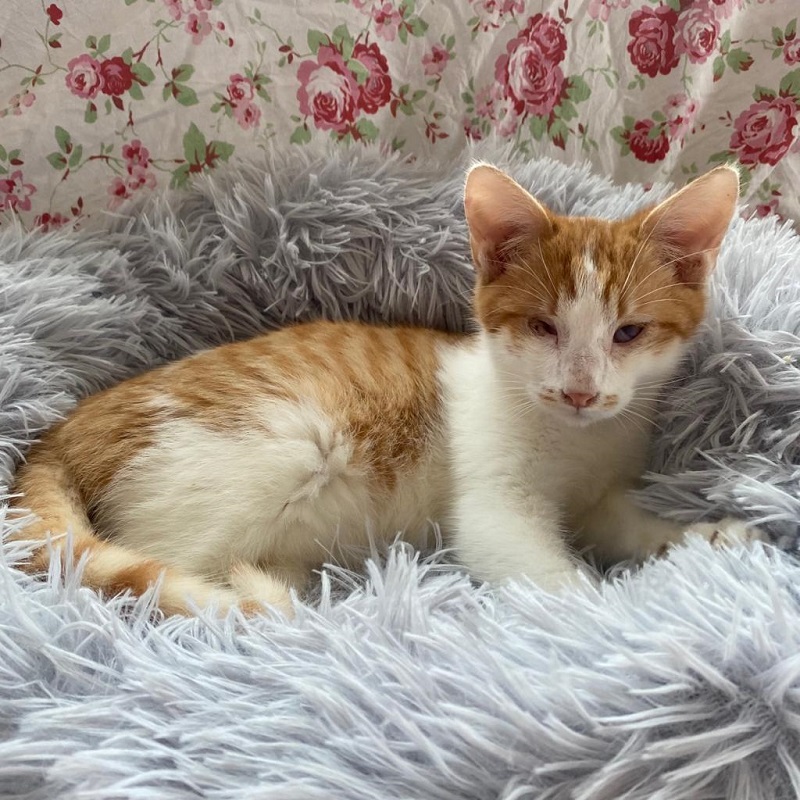 Beide Katzen teilen ein Schicksal, denn auch dieser wunderschöne Jungkater hat keine vollständige Sehfähigkeit. Ein Auge ist in kleinen Ansätzen zu erkennen, doch noch ist unklar, ob und wie wie er jemals sehen wird. Das andere Auge scheint nicht vorhanden zu sein. Katerchen Klee kommt mit dieser Einschränkung ebenfalls wunderbar zurecht und liebt es, wenn er mit Ruhe und Zeit gestreichelt wird. Schnurrend genießt er es im weichen Körbchen zu liegen - wie man im Video schön sehen kann.