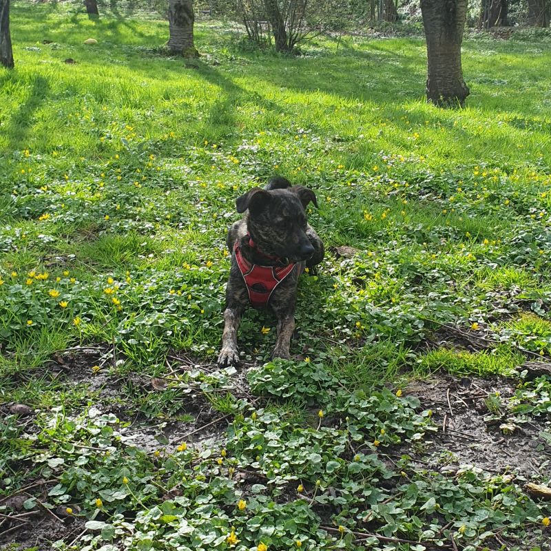 Über unsere Mitarbeiter freut Heidi sich schon, sie geht mit in die Hundeschule, hat Spaß am Spazierengehen und ist gerne bei ihrem Menschen mit dabei.
