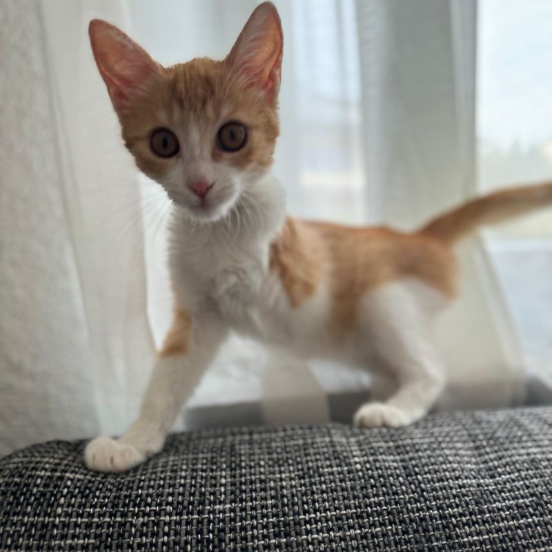 Runa ist eine zauberhafte, zarte Jungkatze. Sie liebt es gekuscht und umschmust zu werden, auch legt sie sich gerne auf den Rücken und lässt sich das Bäuchlein streicheln. Sie kann trotz ihrer drei Beinchen blitzschnell sein, spielt gerne und beobachtet alles mit großer Neugierde. Mit großer Aufmerksamkeit werden am Fenster die umherlaufenden Hühner und Hunde beobachtet und freundlich mit einem lauten "Miau" begrüßt.