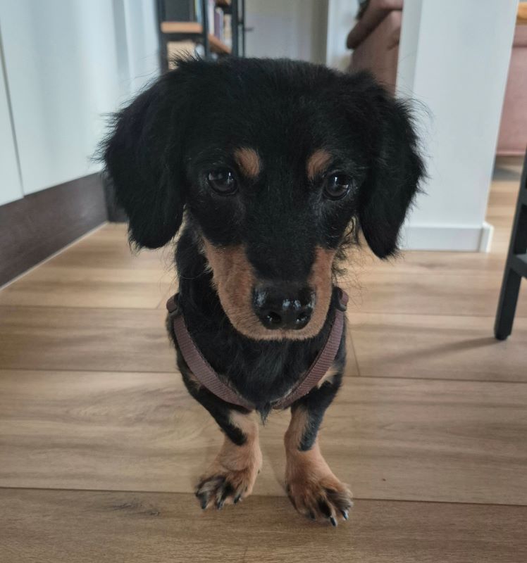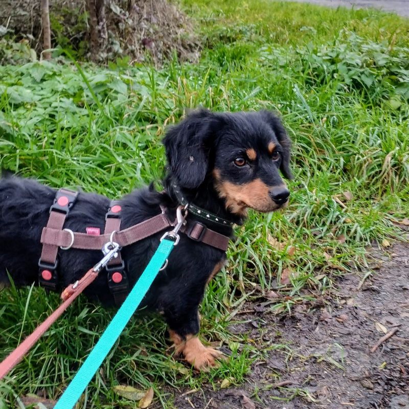 Besuch gegenüber zeigt sie sich scheu und reserviert, man sollte ihr nicht auf die Pelle rücken, sobald sie sich belagert fühlt, weicht sie aus, versteckt sich, oder drückt, wenn man sie zu sehr bedrängt, ihre Angst mit Knurren aus. Ignoriert man sie, entspannt sie sich schnell wieder und verkrümelt sich in ihr Körbchen. Auch wenn der Dackelblick und ihre süße Optik es suggeriert, aktuell ist Heidi (noch) kein Schmusehund, gemeinsame Stunden auf dem Sofa muss man sich noch erarbeiten. Streicheleinheiten im Körbchen, draußen oder im Haus nimmt sie gern an und genießt es. Mit Geduld und Zeit lernt die kleine Maus auch, dass sie sicher angekommen ist.