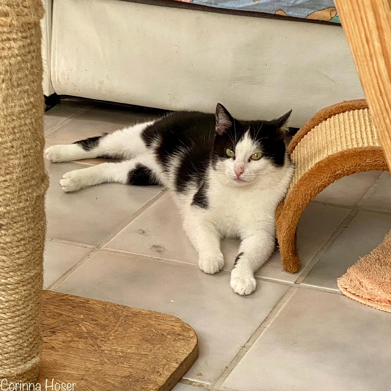 Sora rennt nicht mehr so oft weg, wenn man in ihre Nähe kommt. Anfassen lässt sie sich aber bislang noch nicht. Hier bedarf es noch ein wenig Geduld und Fingerspitzengefühl. Wir sind uns aber sicher, dass es nicht mehr lange braucht, bis sich Sora streicheln lassen wird. Sie ist neugierig und das wird garantiert das Eis brechen können.