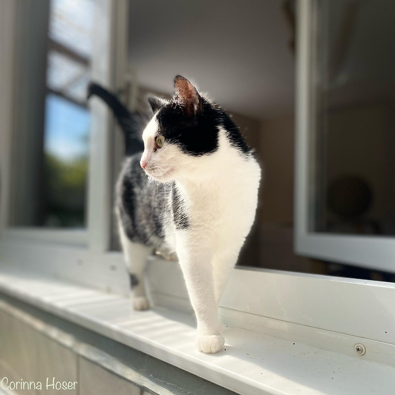 Sora taut so langsam auf und begrüßt ihr bekannte Menschen miauend und mit erhobenem Schwanz.