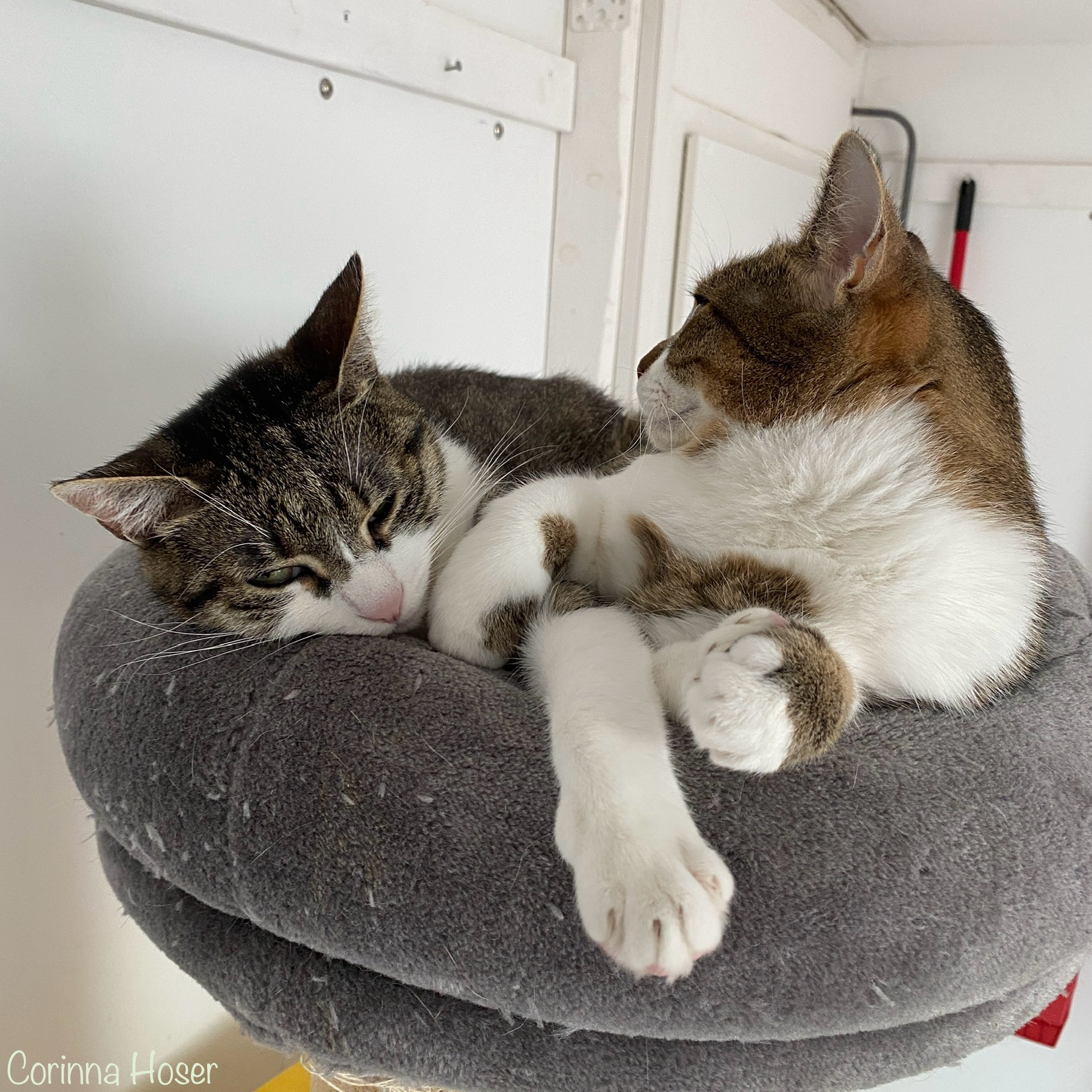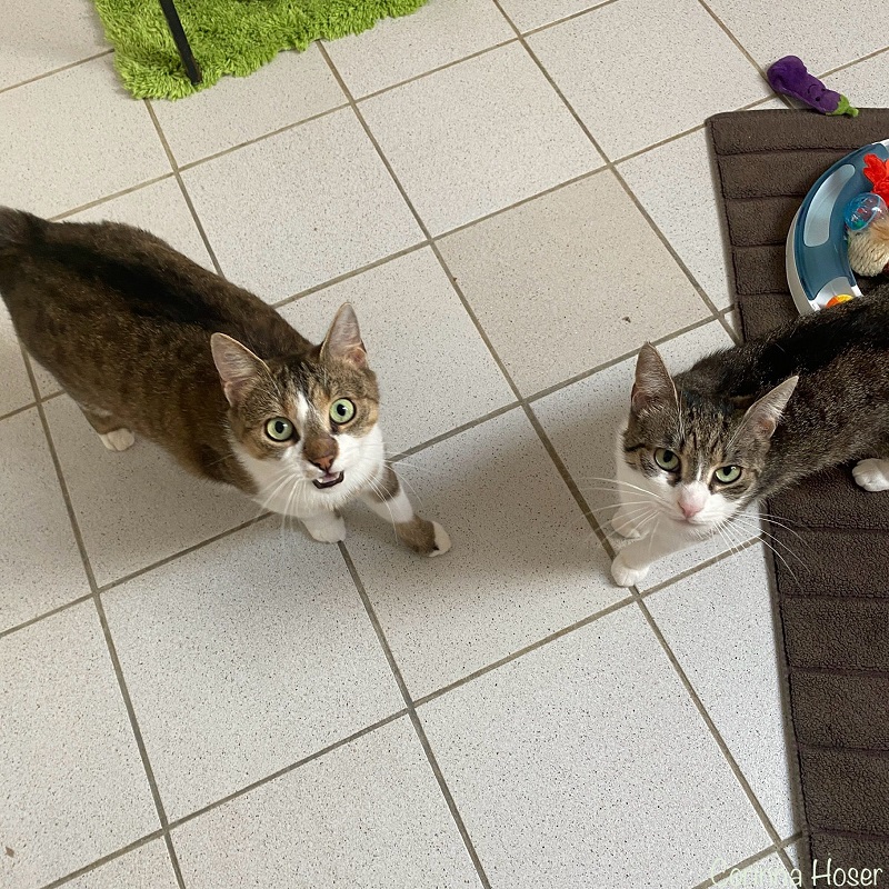 Beide sind neugierig und möchten die Welt erkunden, daher suchen sie ein Zuhause mit Freigangsmöglichkeit in einer verkehrsarmen Umgebung. Sie werden nur zusammen vermittelt.
