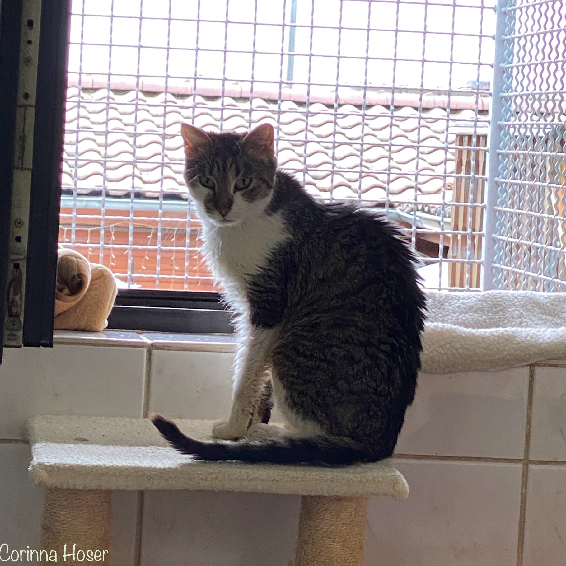 Adelheid wurde vor einigen Wochen in einem wirklich schlimmen Zustand aufgefunden, ihr Fell war verklebt und sie war völlig abgemagert. Adelheid ist eine verschlossene, in sich gekehrte Katze, die uns Menschen schlimmes zutraut.