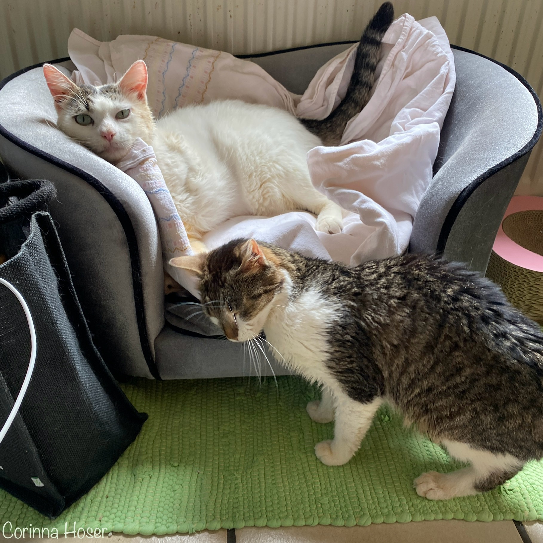Mit Adelheid waren wir in der Klinik zur Einschätzung, denn sie zeigt im Mäulchen starke Schleimhautveränderungen, deren Ursache im besten Fall mittels Probenentnahme und folgender Untersuchung im Labor herausgefunden werden soll, aber noch immer trauen wir uns nicht, Adelheid hierfür in Narkose zu legen.