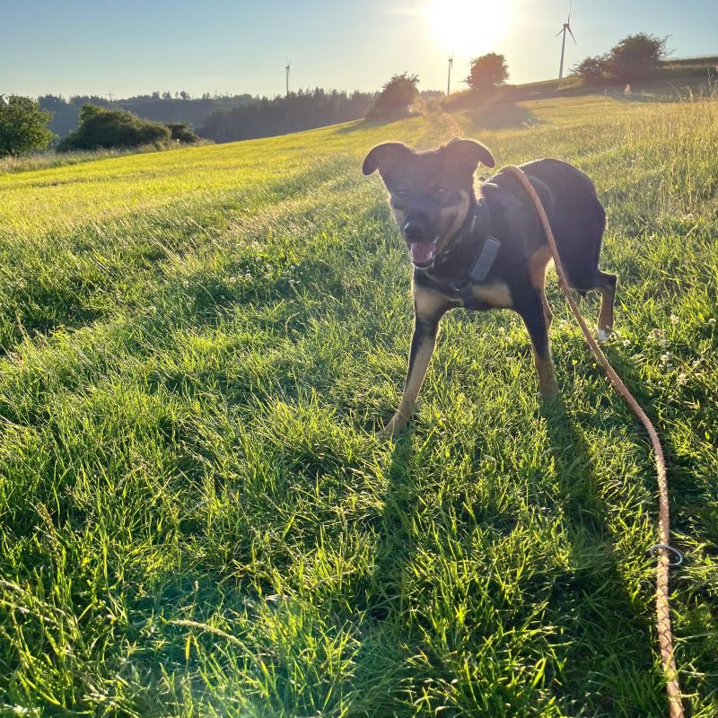 Neuem gegenüber ist sie erst einmal skeptisch und vorsichtig, aber auch neugierig. Sie möchte gerne alles richtig machen und versucht sich gut an ihrem Menschen zu orientieren. Gleiche Abläufe und Routinen geben ihr Sicherheit. Vor unbekannten Geräuschen hat sie Angst, woran wir gerade arbeiten.