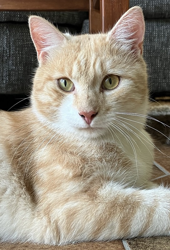 Er geht offen und freundlich auf jeden zu, begrüßt neue Bekanntschaften charmant und streicht dabei gern um die Beine. Manchmal erinnert er fast an einen Hund – er empfängt uns mit einem aufgeregten Taubengurren und begleitet seinen Menschen aufmerksam auf allen Wegen durchs Haus. Alltagsgeräusche wie Staubsauger oder Waschmaschine bringen ihn nicht aus der Ruhe, was darauf hindeutet, dass er schon einmal in einem Zuhause mit Menschen gelebt hat.