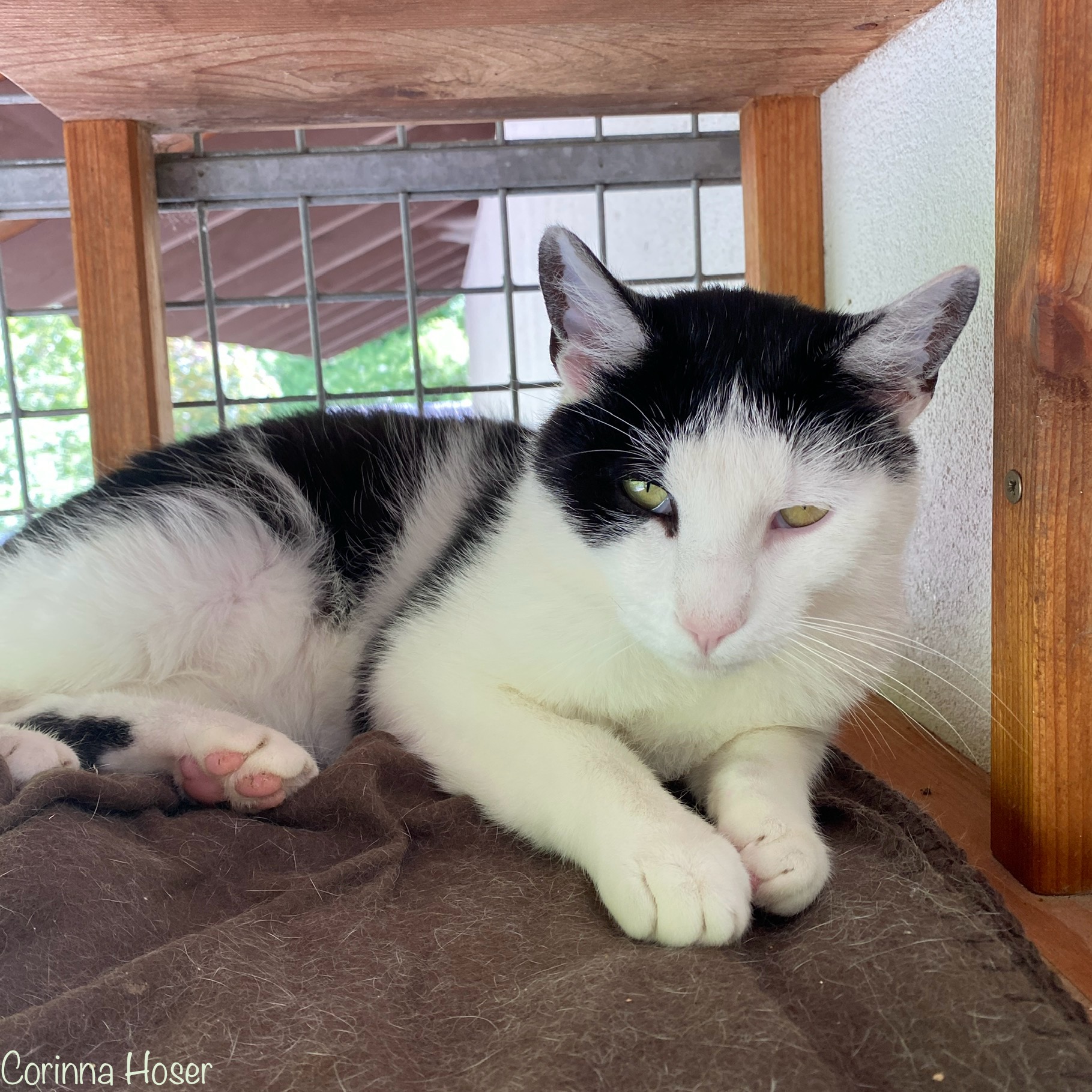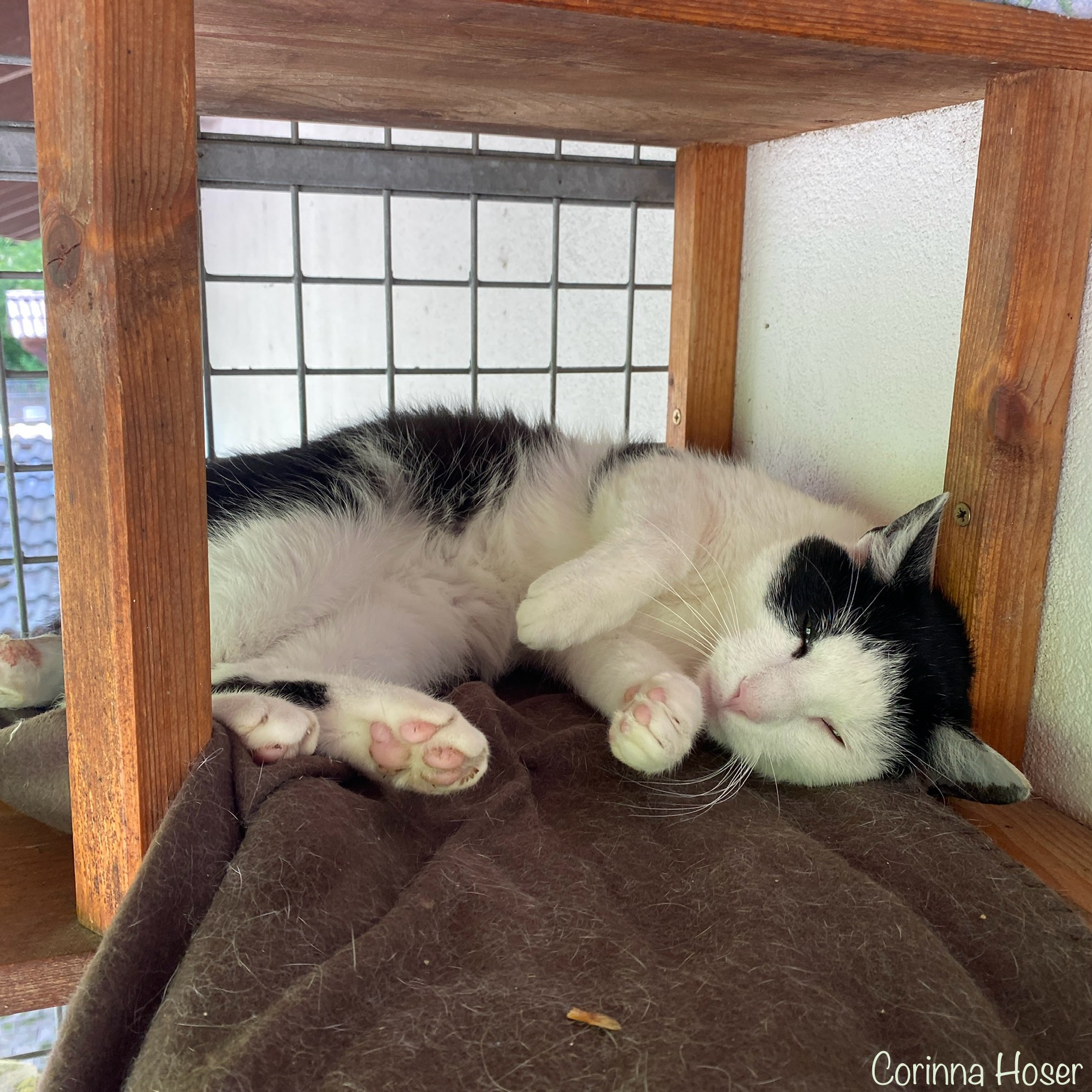 Dieses kleine Handicap ist für Robert aber gar nicht so schlimm. Er meistert seinen Tierheimalltag hervorragend. In Kater Oskar hat er anfangs einen tollen Spielkameraden gefunden. Die beiden tobten durch das Zimmer und es war sehr lustig ihnen dabei zuzuschauen. Mittlerweile schläft Robert gern über den Tag und man sieht ihn gar nicht mehr so viel mit Oskar spielen. Robert ist sehr sozial, was seine Artgenossen angeht. Auch mit Tinka und Robin hat er überhaupt keine Probleme. Er liegt gern auf dem Balkon und genießt die frische Luft.