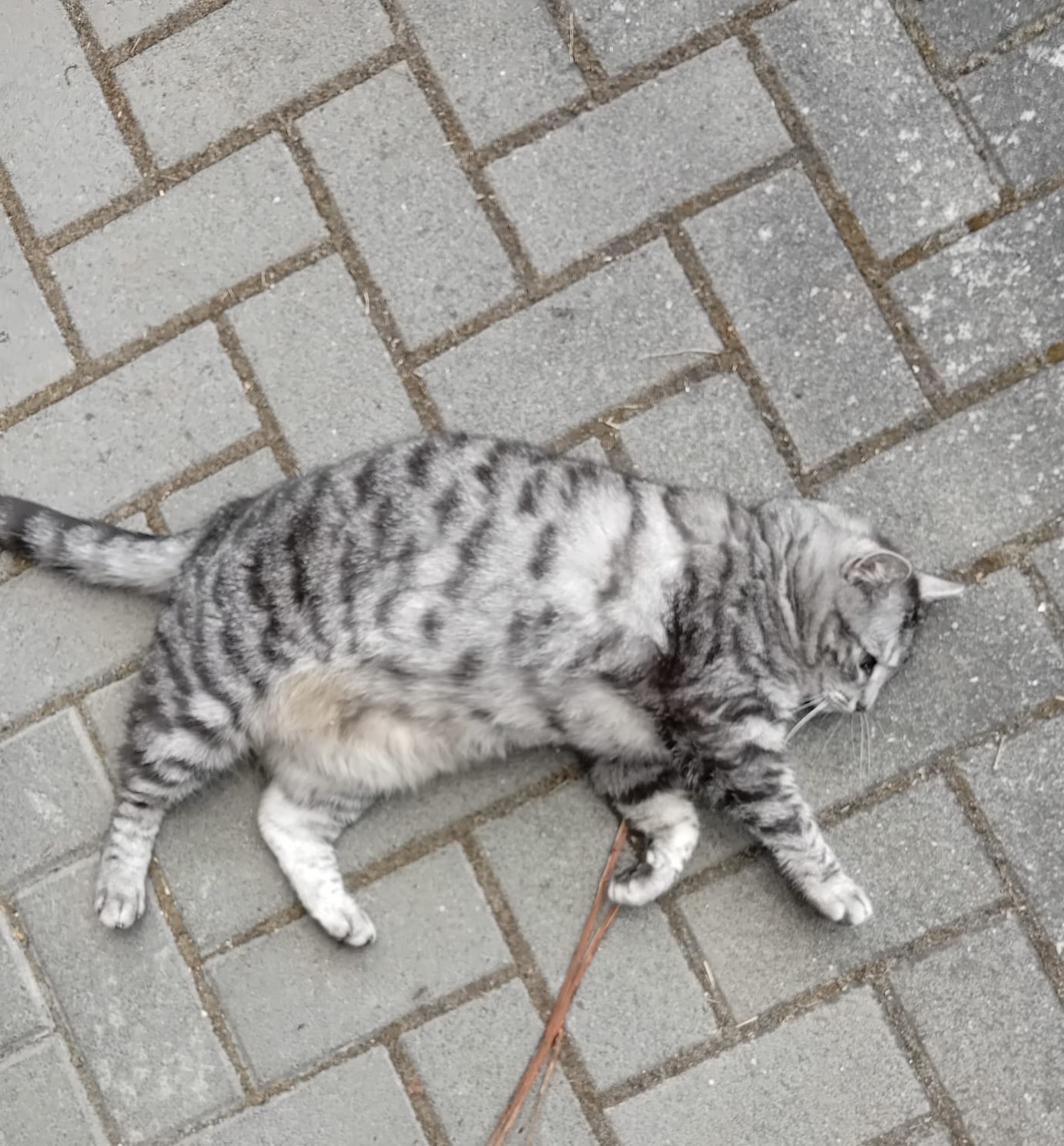 Die eine Katze ist mittlerweile zahm geworden und hängt sehr an mir. Die andere Katze lässt sich beim Fressen zart über den Rücken streicheln. Die beiden sind Klammerkatzen und schlafen immer zusammen.