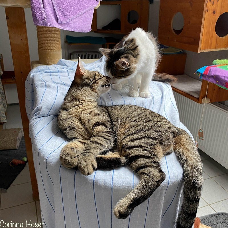 Casa-Nova kam über einen befreundeten Tierschutzverein, der Tierhilfe Hoffnung, zu uns nach Alsfeld. Der junge Kerl ist ein richtiges Powerpaket. Er ist frech, verspielt, aber kann auch lieb und verschmust sein. Für ihn suchen wir ein tolles Zuhause zusammen mit Patachon. Die beiden sind typische Jungkater, die ihre Kräfte bzw. auch sich messen möchten, aber sie machen das so liebevoll. Solch tolle Kumpels sind die Beiden, die sich bei uns gesucht und gefunden haben und das wollen wir einfach nicht mehr trennen. Denn für Patachon war es schwer einen Kumpel mit gleicher Energie zu finden und Casa-Nova war da die Nadel im Heuhaufen.