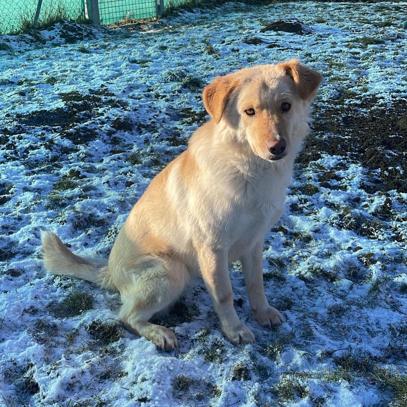 Die junge Hündin ist verschmust, lebhaft und steckt voller Energie. Aufmerksamkeit und Streicheleinheiten liebt sie sehr – besonders von ihren Bezugspersonen. Schnell merkt man, wie sehr sie den Kontakt zu Menschen genießt. ❤️ Elly ist neugierig, verspielt und möchte noch viel lernen. Da sie in einem rumänischen Zwinger aufgewachsen ist, hat sie bisher noch nicht viel von der großen Welt kennenlernen dürfen. Neue Situationen verunsichern sie noch oft. Mit geduldigen Menschen an ihrer Seite wird sie aber Schritt für Schritt sicherer und selbstbewusster. 🐶 Sie ist ein Mischling, vermutlich mit Anteilen eines Herdenschutzhundes. Deshalb wünschen wir uns für sie ein hundeerfahrenes Zuhause, das ihre Eigenschaften versteht und sie liebevoll und souverän begleitet. Nach einer Eingewöhnungszeit würde ihr auch geistige Auslastung sehr guttun, und eine Unterstützung durch einen Hundetrainer wäre sehr willkommen. 🐾 Ein ruhigeres Zuhause ohne kleine Kinder und ohne Katzen wäre für sie ideal. 🙏