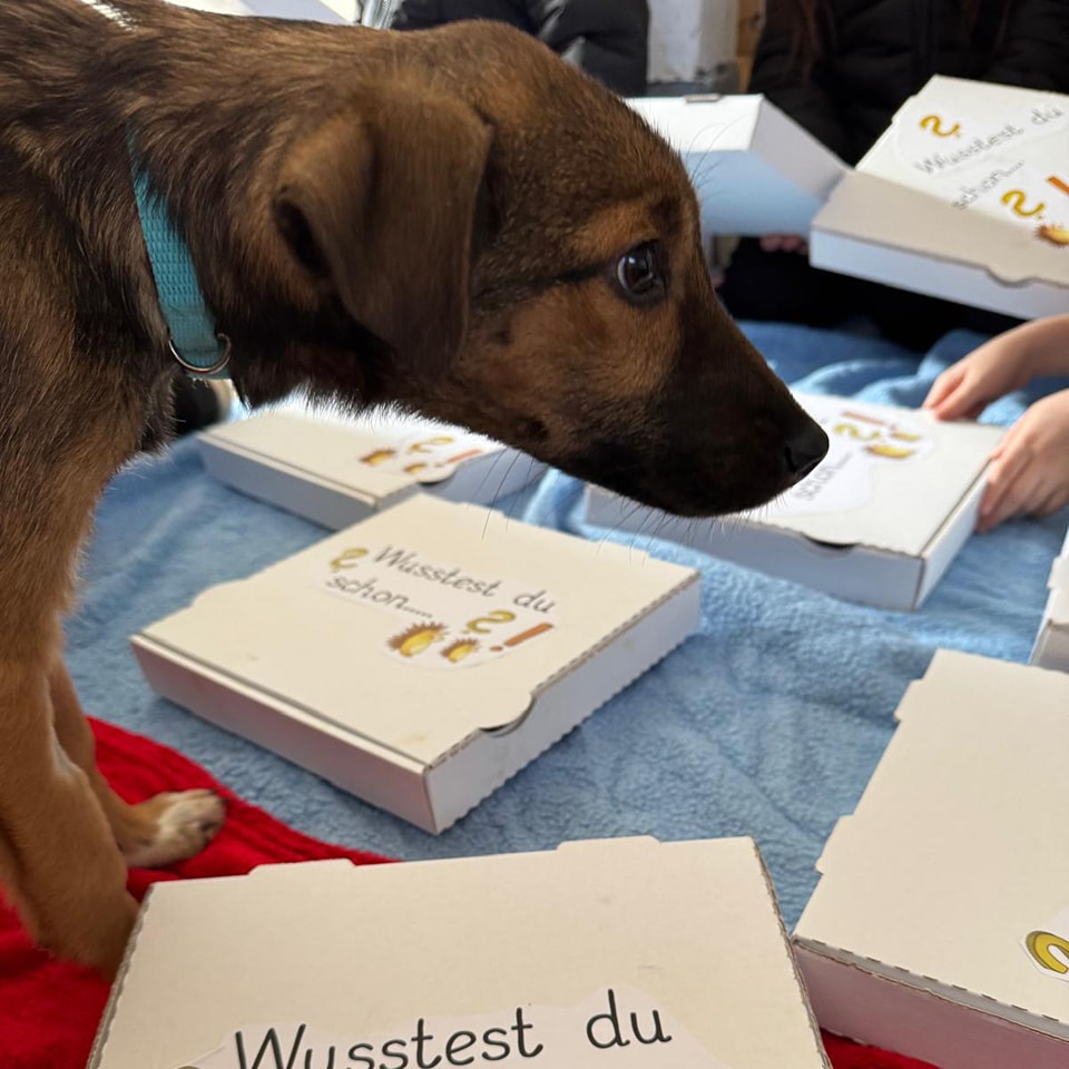 In der Kinder- und Jugendtierschutzgruppe am 16. Februar 25 informierte sich Junghund Hubert gemeinsam mit den Kindern zum Thema „Igel".