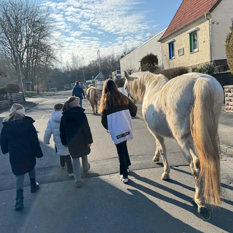 Im Anschluss durfte unsere Gruppe noch gemeinsam mit unserer Tierheimleitung und den Ponnys einen Spaziergang machen. Was eine Freude für alle Beteiligten.