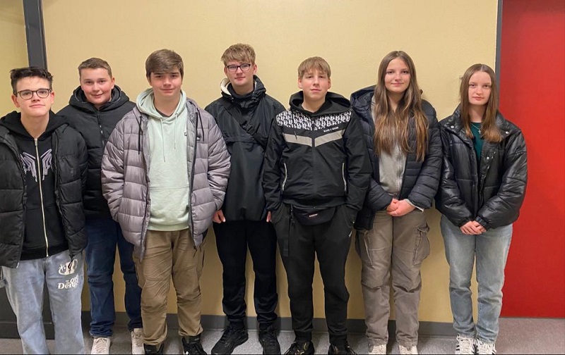Ein ganz großes Dankeschön gilt den Jugendlichen der 9H, die so aufmerksam waren und den kleinen Kerl entdeckt haben. So konnte umgehend gehandelt werden, denn bei den Temperaturen kühlt so ein kleiner Körper sehr schnell aus. Dies war ein ganz tolles Zusammenspiel! Vielen Dank! Hier sehen Sie sie von links nach rechts: Lucas S., Louis N., Fynn R., Collin W., Jaden P., Leonie T. und Jasmin W.