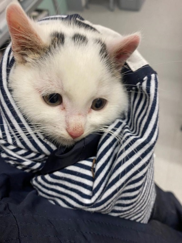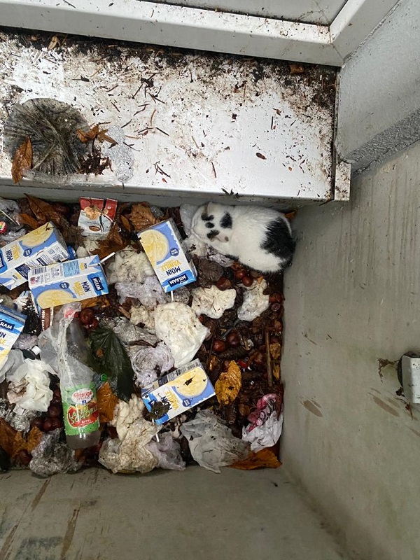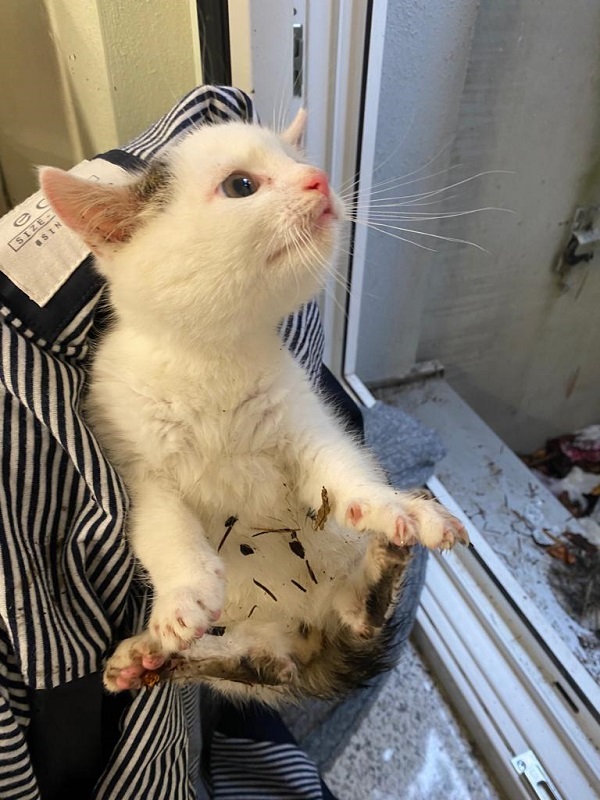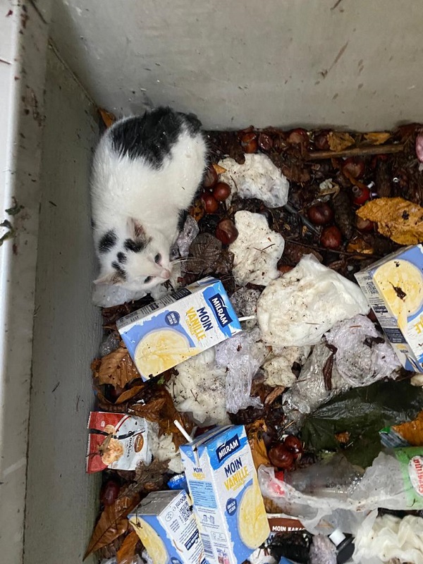 Frau Schmidt, Lehrerin an der Geschwister-Scholl Schule, eilte daraufhin zu besagter Stelle und konnte anfangs kein Kätzchen ausfindig machen. Suchend traf sie dann schließlich auf die Gruppe Jugendlicher, die ihr dann die Stelle zeigten. Ein kleiner Kater saß in einem Kellerschacht der Schule. Keiner weiß wie lange der kleine Kerl da schon drin saß. Ein Tag oder gar schon zwei?
