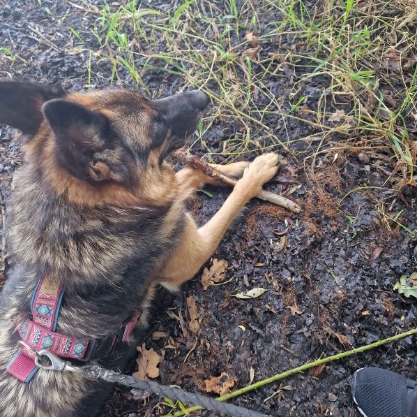 Beim Seibelsdorfer See war heute sehr viel los, viele Spaziergänger. Man bemerkte eine gewisse Nervosität bei Daike. Aber davon ließ sie sich nicht abhalten, um überall ausgiebig zu schnüffeln. Nach ein paar Minuten merkte man deutlich, dass Daike sich entspannt hatte und sie genoss die fremde und neue Umgebung. Die ganzen Spaziergänger und auch Kinder, störten sie überhaupt nicht. Sie ging neugierig ihren Weg. Direkt am See, etwas abgelegen vom Fußgängerweg, blühte sie auf und spielte mit einem Stock, wälzte sich im Gras und danach legte sie sich hin und entspannte erstmal und genoss die Streicheleinheiten.